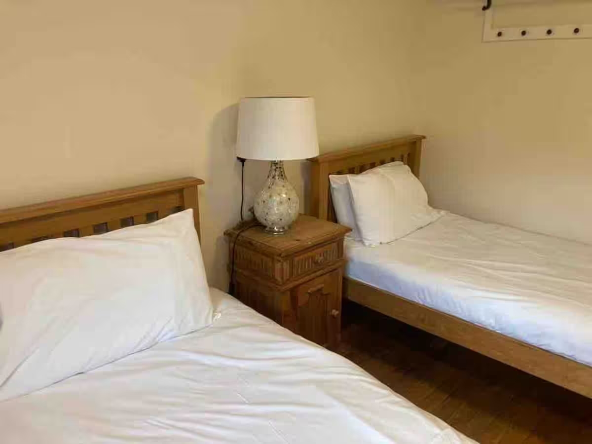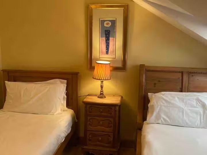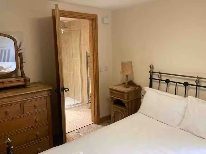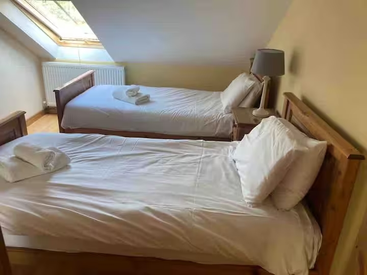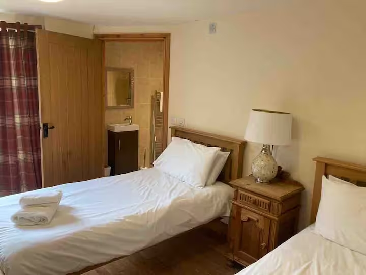 - The larger twin bedroom and shower room is wheelchair-friendly and has French doors leading out into the barbecue area.